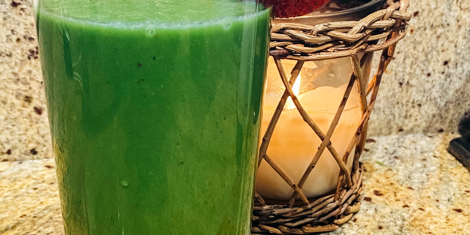 The famous Green Smoothie! I learned of this smoothie from @TheMattieJames who learned of it from @ReeseWitherspoon who learned of it from @KerryWashington . Tale of the traveling smoothie, right!? It’s full of leafy greens and fruit, and it truly tastes good! You can’t really taste the greens. It tastes like banana and peanut butter to me.